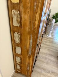 vetrina in legno di Legno riciclato 90x40x180 multicolore laccato NATURE OF SPIRIT. NATURE OF SPIRIT è prodotto da legno di recupero industriale, vecchi telai, vecchi mobili... I pezzi di legno riciclati vengono poi tagliati, regolati e scolpiti per produrre mobili atipici e caratteristici. I mobili sono realizzati a mano con materie prime naturali dal sito online Massiccio Mobili. Compreso logo e certificato garanzia.