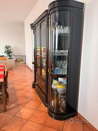 Vendo vetrina in legno scuro lucido, composta da tre moduli uniti:
