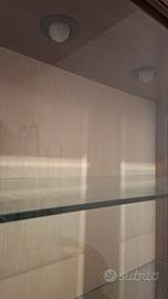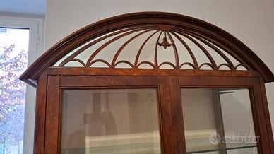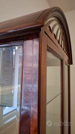 Vetrina in stile in radica di noce, con illuminazione interna. Ilmobile è ben tenuto, riduco il prezzo perché un vetro è incrinato. Se acquistato aggiungo incluso nel prezzo indicato n° 4 sedie dello stesso stile.