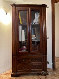 Fuciliera in stile trasformata in vetrina con rifiniture in radica e due cassettoni. In ottime condizioni. Alta 183 cm, larga 95 cm e profonda 37 cm