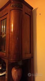 splendida in noce chiaro in perfetto stato, vetri molati, intarsi geometrici, angoli stondati, fattura di mastro artigiano euro 1800. Abbinata a tavolo allungabile x 10 persone (euro 900)