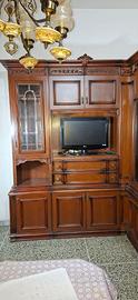 Mobile per salotto in stile classico fatto in legno. Ha diverse vetrine (una con luce), cassetti e ripiani. H 2.41m, lato lungo L 2.5m, P 0.47m, lato corto L 1.52m e P 2.00m. Ritiro in zona Casalecchio di Reno, già smontato