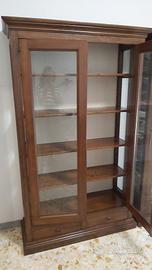 vetrina / libreria in legno e vetro, con 4 ripiani in legno e 2 cassetti in fondo. aggiungo che le vetrine sono 2 perfettamente uguali. il prezzo è singolo.