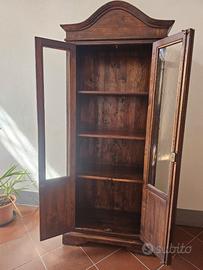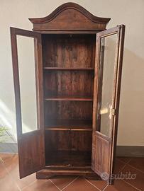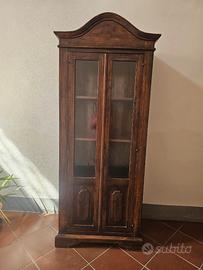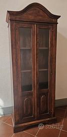 Vetrina in legno massello dallo stile classico Elegante vetrina a due ante in legno scuro con vetri frontali, perfetta per esporre libri, porcellane o oggetti da collezione. Il design sobrio ma raffinato è impreziosito da un cappello sagomato e pannelli intagliati nella parte inferiore delle ante. Internamente dotata di ripiani in legno, questa vetrina coniuga funzionalità e fascino vintage, ideale per ambienti rustici, classici o shabby chic. Misura H.206cm, L.76 cm, P.41 cm DISPONIBILI ALLA SPEDIZIONE CON PREZZO DA VALUTARE