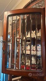 La vetrina ha un colore caldo, con venature visibili del legno e una finitura lucida che ne esalta la qualità artigianale.