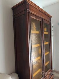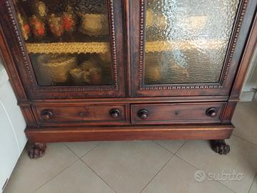 Vetrina stile antico con 5 ripiani e due cassetti,zampe di leone ben tenuta