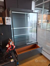 Larghrzza 107cm Profondità 57cm Altezza 184cm .Mobile di pregio con 3 mensole di vetro e cassettone.