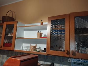 Vetrinetta per cucina in legno e vetro per contenere tazze, bicchieri etc. Lunghezza m.2,00 Altezza cm 62