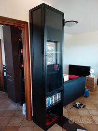 vetrina nera verniciata al forno alta 240cm larga 60 cm profonda 41cm pannelli in legno e cristalli le mensole sono regolabili