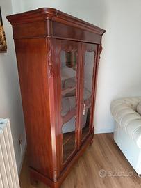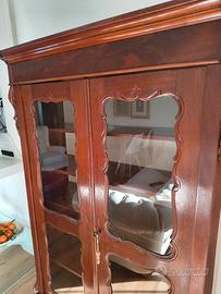 vetrina antiquariato francese restaurata originale 800 (foto del retro +della parte superiore originale ) in ottime condizioni con intarsi laterali artigianali , per mancanza di spazio e sostituzione con armadio. Perfetta come pezzo antico in arredamento moderno .