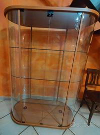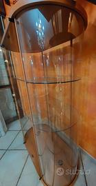 Vetrina Palladio marca Fiam originale in vetro curvato trasparente, tre ripiani, due ante apribili con serrature, basi in legno ciliegio e possibilità di illuminazione a led alla base.