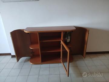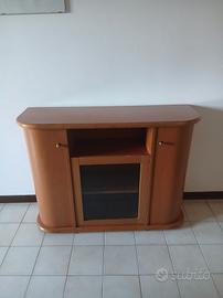 mobiletto con vetrina in legno pieno massiccio