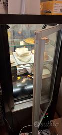 Vetrina espositiva con ruote . Misura larghezza cm 60 ,altezza cm 1,40 . Profondità cm 70 . Apribile sia davanti per pulizia , dietro sportello apribile.