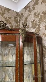 vetrina per salone in legno, vetro con angeli e dettagli in ottone