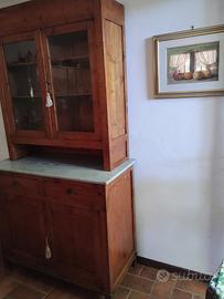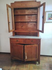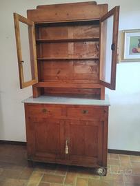 Vetrinna 2 pezzi in legno con base in marmo,in buone condizioni. Altezza totale 220cm,larghezza 114,profondità 54