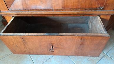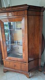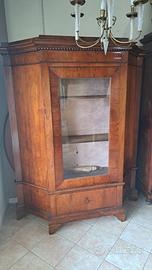 vetrina scantonata in noce Toscana fine 800 1 anta a vetro e 1 cassetto ottime condizioni misura 175x55 altezza 205...M&P Antichità siamo un negozio specializzato in antiquariato vintage e shabby vendita al dettaglio e all ingrosso scarichi settimanali oltre 500 articoli in negozio, abbiamo una vasta scelta di como comodini tolette armadi letti vetrine vetrinette credenze servanti angoliere librerie tavoli tavolinetti sedie poltrone poltroncine divani lampade lampadari tappeti scrivanie scrittoi secretere ribaltine consolle quadri cornici specchi cassapanche bauli oggettistica varia idee regalo e molto altro ci troviamo a Roma zona Castelverde via Massa San giuliano 26b POSSIBILITÀ DI CONSEGNA E SPEDIZIONE IN TUTTA ITALIA PER INFO LUCA