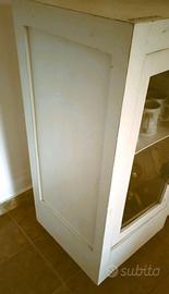 Vetrina shabby chic, ex parte sopra di una vetrina liberty trasformata in credenzina. Misure 125x40x100 cm di altezza.