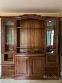 Vendesi vetrina soggiorno con sportelli centrali e quattro ante con vetro superiori. Anni 90. Mantenuta benissimo come da foto. Smontabile in 3 parti. Per info 3394285058