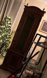 Vendo vetrina in legno con anta e ripiani in vetro nella parte superiore e un'anta nella parte inferiore con ripiano interno in legno.