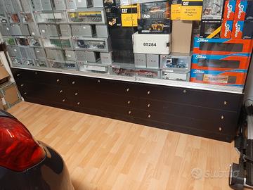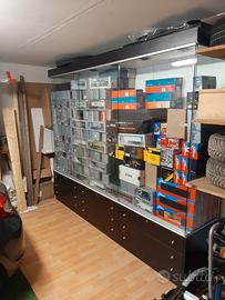 vendo vetrina per modellismo o altro costruita artigianalmente da professionisti con ripiani in vetro e cassetti in legno su guide scorrevoli. vetri davanti scorrevoli. impianto luci. ripiani sempre in vetro piu base. misure: larghezza 270 cm altezza 221 cm profondità 54 cm visibile a Trento nord. smontaggio carico e trasporto a cura dell'acquirente. prezzo richiesto euro 600 non trattabili. NB!MODELLINI ALL'INTERNO NON COMPRESI.