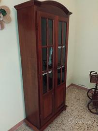 vendo bellissima vetrina verticale a sviluppo su 4 ripiani e 2 antine nella parte inferiore in legno massello colore noce. dimensioni 60x40x200
