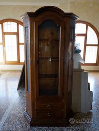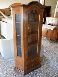 Vetrina scantonata, 1 porta e 2 cassetti. Dimensioni 94 x 35x h. 188 cm