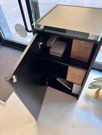 Vendo bancone e vetrine da negozio Tenute perfettamente senza alcun segno, solo una leggera scheggiatura nel vetro di una vetrina causata purtroppo non da me ma dal vetraio in fase di costruzione. (Lato interno della vetrina, da fuori non si vede) PREZZO TRATTABILE