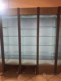 Scaffalature illuminate con ripiani in vetro, come base cassetti in legno Ottime condizioni Prezzo da concordare dopo visione Ritiro a carico del cliente