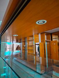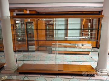 mobile interamente in vetro con ante scorrevoli e ripiani tutto in vetro illuminazione incorporata nel pannello di legno superiore solo con ritiro sul posto