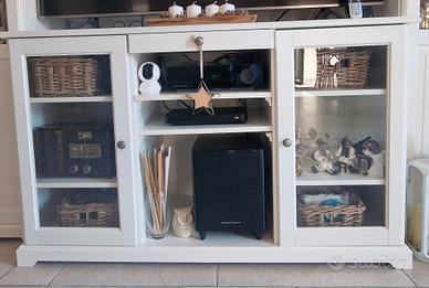 vendo x cambio stile,parete attrezzata bianca stile shabby composta da 2 vetrine e 1 servante,ottime condizioni con cornice alta anticata.