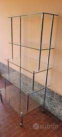 Vendo vetrine componibili in cristallo provenienti da un arredamento di un negozio. Il prezzo è riferito all'intera fornitura.La composizione in foto può essere replicata fino a un numero di quattro vetrine identiche. Ovviamente si possono comporre a piacimento e al bisogno in modi diversi. Vetri spessi 1 cm. molto resistenti e supporti metallici dotati di rotelle per facilitarne lo spostamento. La composizione in foto misura 90cm in larghezza x 168cm in altezza. Volendo unire quattro composizioni identiche si otterrebbe una copertura di 3 metri e 60cm. Usate ma in buone condizioni, vendo al mio domicilio a carico dell'interessato. Non effettuo spedizioni.
