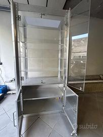 Struttura in Metallo con vetrate in plexiglass, cassettone con doppia anta in metallo.
