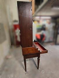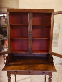 Vetrinetta i 19mo secolo, capolavoro di arte povera toscana in castagno, con cassetto e ribaltina. Restaurata e trattata antitarlo professionalmente. Misure: altezza 190, larghezza 90, profondità 30/60. Divisibile in 2 corpi.