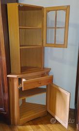 vendo vetrinetta angolare in pino 56 x 56 h. 181 come da foto. antina superiore con vetro. calamite per la chiusura. visionabile allego schizzo conisure
