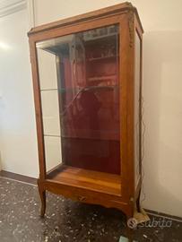 vetrinetta in radica anni '50 con ante in vetro originali e luce con cavo, funzionante. Misure approssimative h 160cm x l 100cm e profondità 50 cm