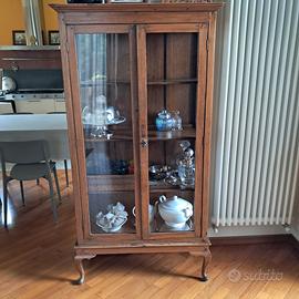 Elegante vetrinetta d'epoca, risalente al '900, con una struttura in legno e ante in vetro.