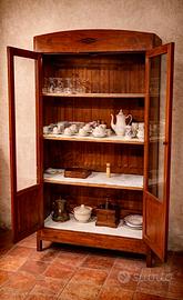 Splendida vetrinetta d'epoca di fine Ottocento, realizzata in legno massello con linee eleganti e grande fascino storico. Il mobile presenta due ante con vetro, perfette per esporre servizi di piatti, bicchieri, porcellane o oggetti da collezione. La patina del tempo e le leggere usure del legno ne testimoniano l'autenticità e il valore, rendendola un pezzo ideale per chi ama l'antiquariato e gli arredi con storia. Perfetta per: • sala da pranzo • cucina rustica • taverna o casa di campagna • esposizione di servizi e oggetti decorativi Epoca: fine '800 Dimensioni: 110 × 45 × 210 cm Condizioni: ottime condizioni generali con normali segni del tempo 📍Ritiro a mano (no spedizione).