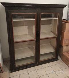 Antica vetrinetta in legno massello con ripiani e ante in vetro L140xP45xH160
