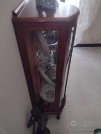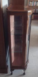Vendo vetrinetta antica, stile inglese, in legno scuro. In buono stato generale, apribile con due chiavi . Ripiani in vetro molato, parte centrale disegnata , sfondo colore rosa antico . Zona di ritiro Dragona. 150 euro .