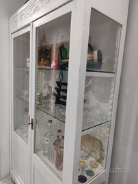 vendesi vetrinetta antica completamente restaurata con piani in vetro cristallo. intarsi a mano.