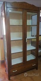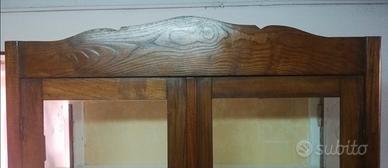 Vendo vetrinetta di antiquariato, realizzata completamente a mano, negli anni 40 in legno di castagno. E' stato effettuato un restauro conservativo eliminando le eventuali tarme, recuperando le mensole e lo sfondo è stato riposizionato con un nuovo telo damascato. I vetri laterali sono serigrafati originali con motivi di angeli e fiori.