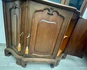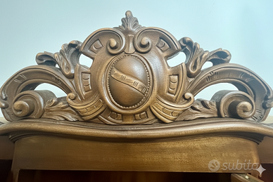 - Struttura in legno, finitura in noce con venature a vista.