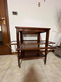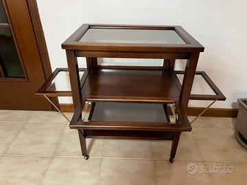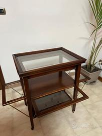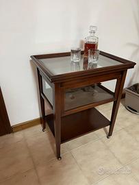 Elegantissima vetrinetta apribile con ripiano superiore addizionale utilizzabile come vassoio. Ottima per i liquori Legno di pregio Dotata di rotelle Ottime condizioni, non mostra segni di usura