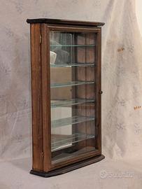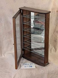 Vetrinetta stile Arte Povera con il fondale a specchio. Portina con vetro. Ottima per inserire oggetti di Cristallo o Porcellana. N°6 ripiani in vetro con spazi da 7 cm. Ganci per appenderla al muro. Misure 38x11 H58. Disponibili varie foto. Prezzo euro 35. Tel. 348-9251201. Gianni.