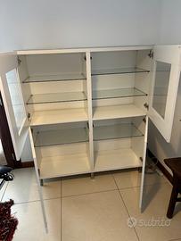 Vetrinetta completa di ripiani in vetro (6) configurabili a piacere vendo per inutilizzo. Dimensioni: L 120 P 40 A 130 cm. Solo consegna a mano