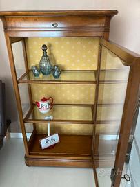 vetrinetta in noce massello con cassetto superiore e ripiani in vetro misure 130×75