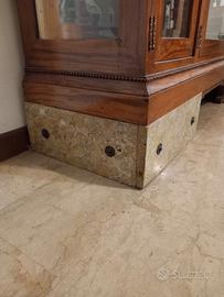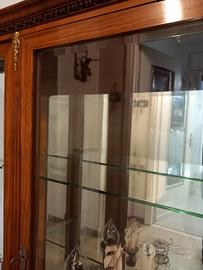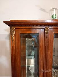 Elegante vetrinetta in legno massello con specchio interno e zoccoletto in marmo e inserti dorati. Disponibile subito. Possibilità di trasporto e montaggio ad euro 200 in più. VALORE REALE 1200 EURO! Misure larghezza 140cm Profondità 40 Altezza 155