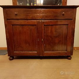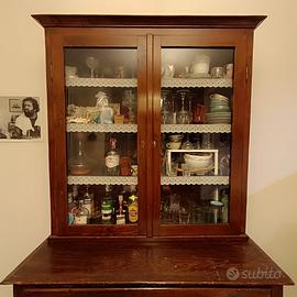 antica credenza doppio corpo con alzata a vetrina primi del 900. misure parte inferiore: altezza 95 cm, profondità 55 cm, lunghezza 125 cm. misure parte superiore: altezza 123 cm, profondità 26 cm, lunghezza 125 cm. Piccole parti da sistemare. Utilizzata sempre in appartamento. Ritiro a carico dell'acquirente. Prezzo trattabile.