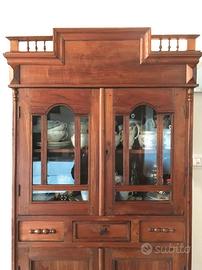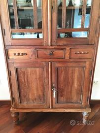 Vetrinetta in stile coloniale, proveniente da La Maison Coloniale Paris, in legno rustico trattato a cera, larghezza massima cm. 84, profondità massima cm. 33, altezza totale cm. 165