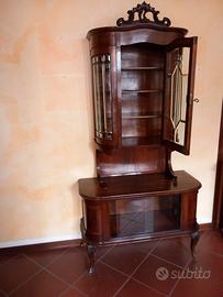 Vetrinetta con base (dim. 104x44x70) ed alzata (dim. 70x35x118) con vetri a piombo (da sistemare) e ripiani in legno
